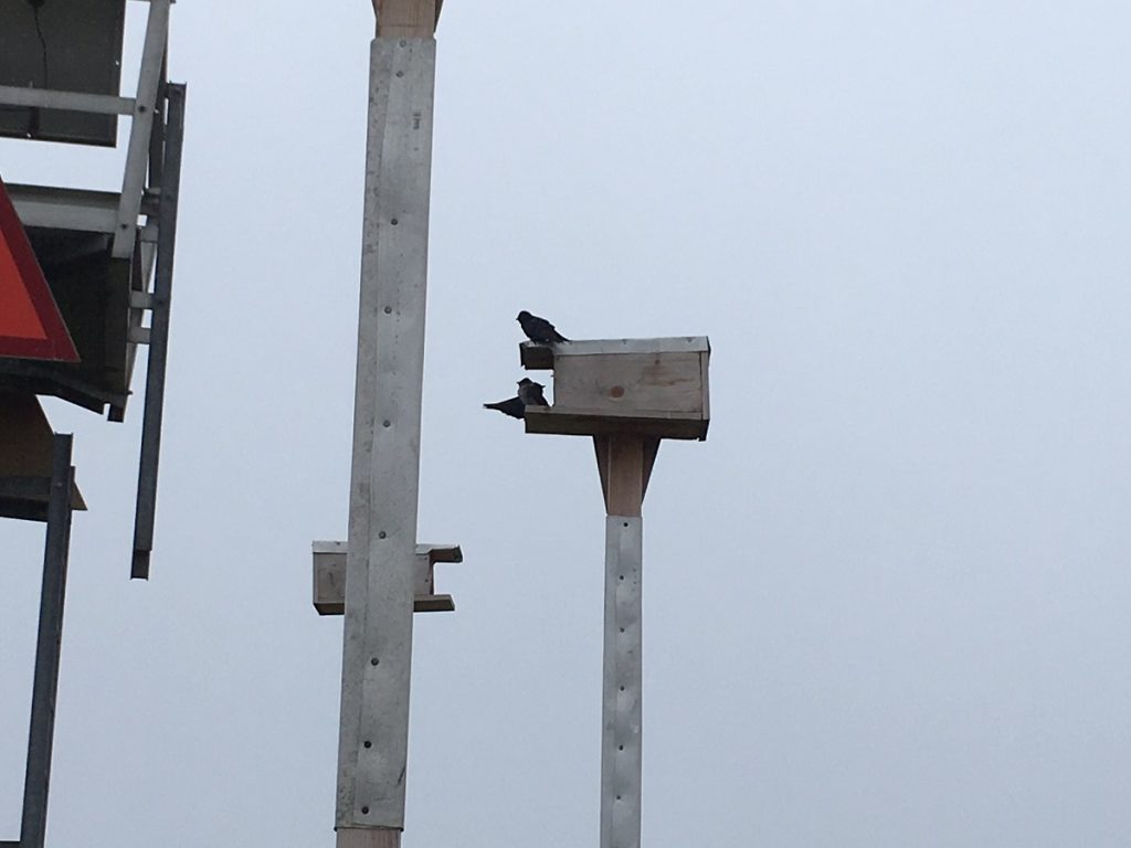 One day after opening the bird boxes, the Purple Martins are back!