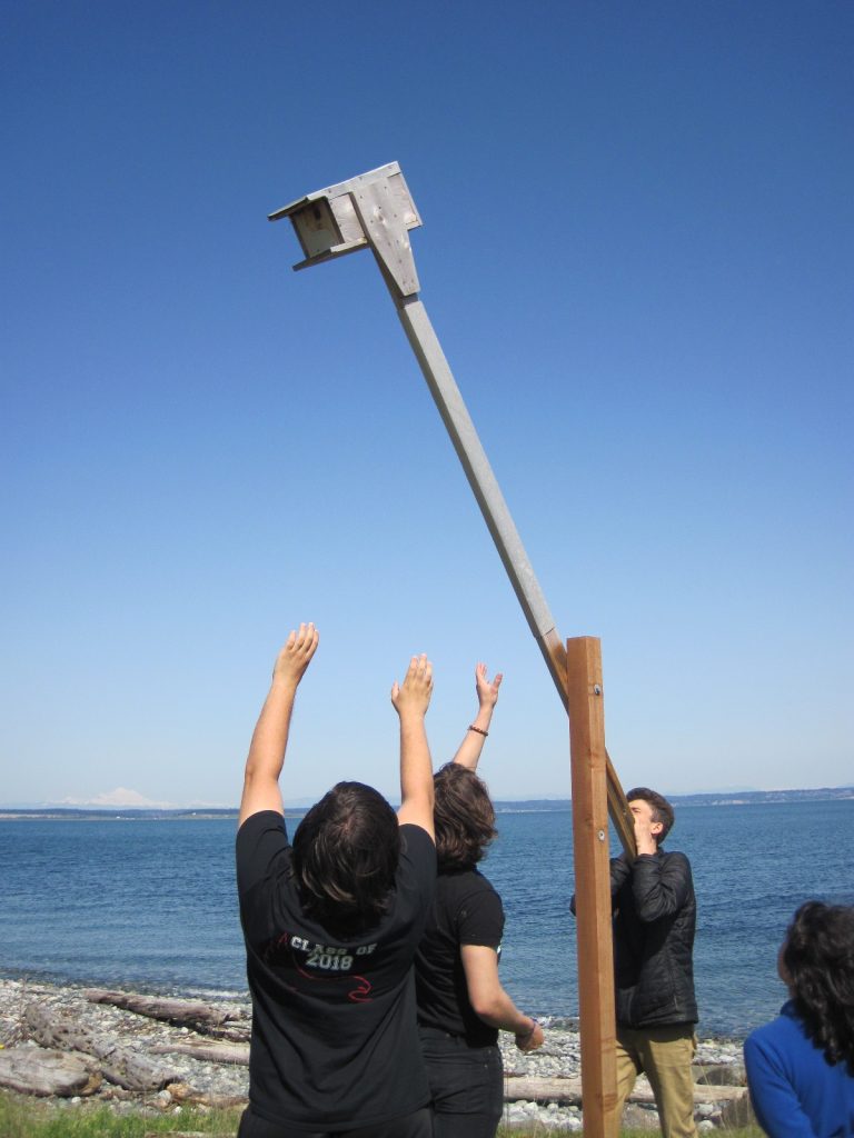 Our last task for the day was to open the Purple Martin boxes at Point Hudson. We brought our tools out and lowered the nesting boxes so we could open them for the season. Hopefully the Martins will be back soon! It was an absolutely beautiful day and we enjoyed getting outside and having our snack and moment of silence by the beach. Next week we hope to have a full crew for getting out on the water and practicing skills for our May 8th expedition.