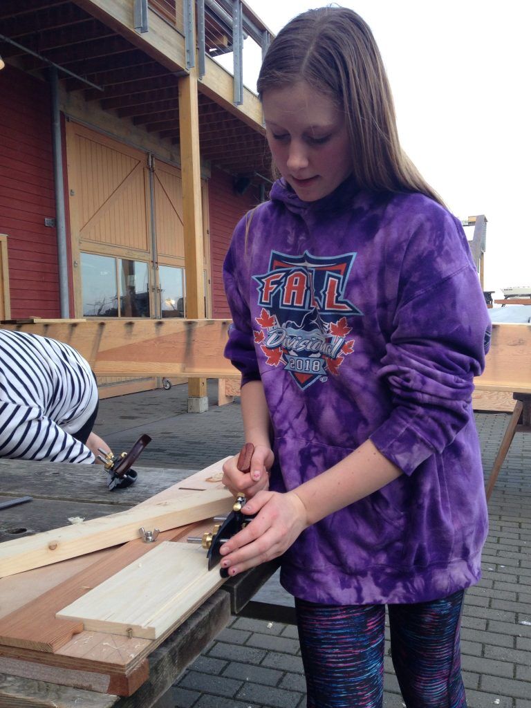 It was sunny this week and we were excited to continue our shop projects. We got creative and set up our hand tool projects outside on the picnic tables. It was fun to be outside in the sunshine. We also had lots of interested visitors stopping by to check out our projects.