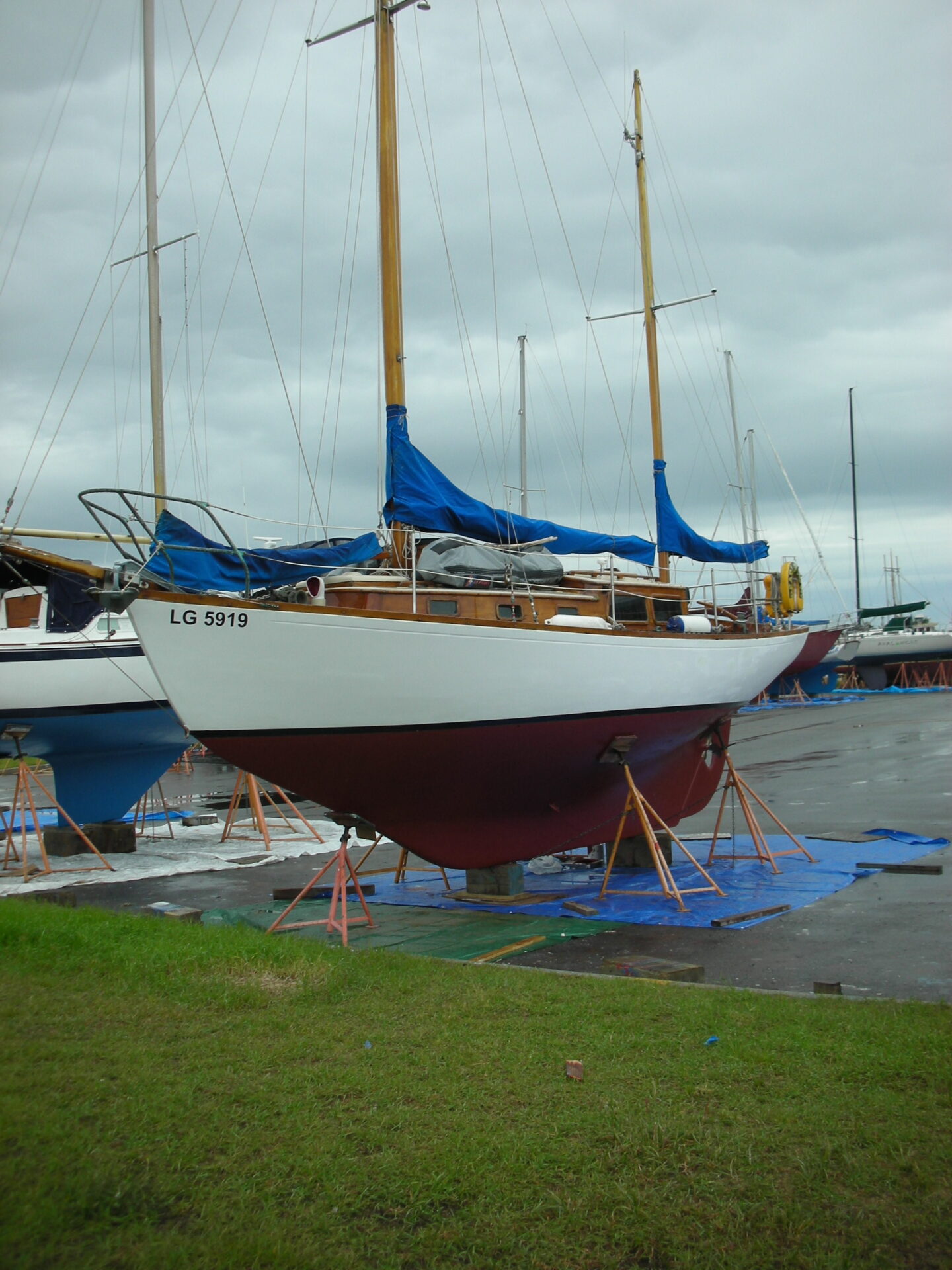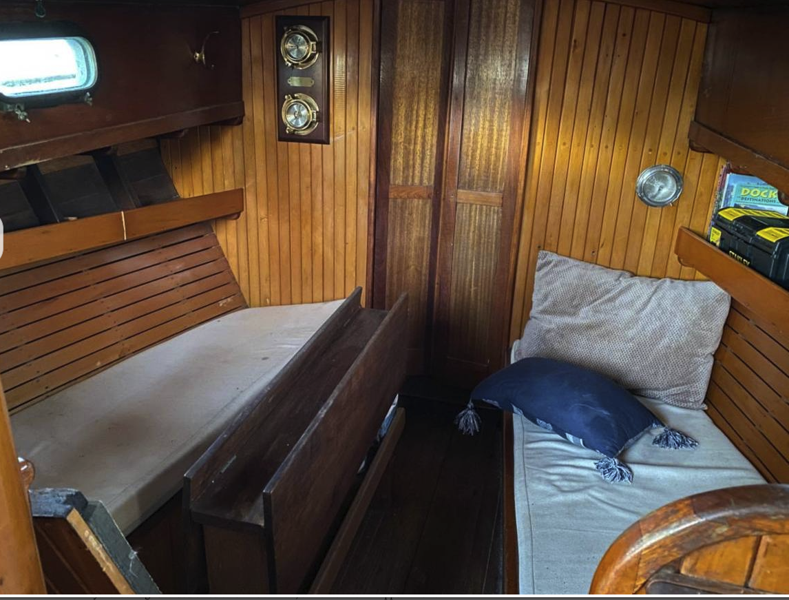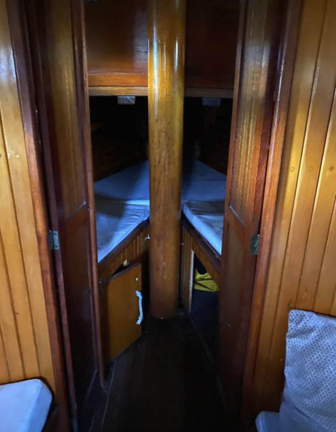 She’s an old wood boat but all in all in really good shape and ready to sail.