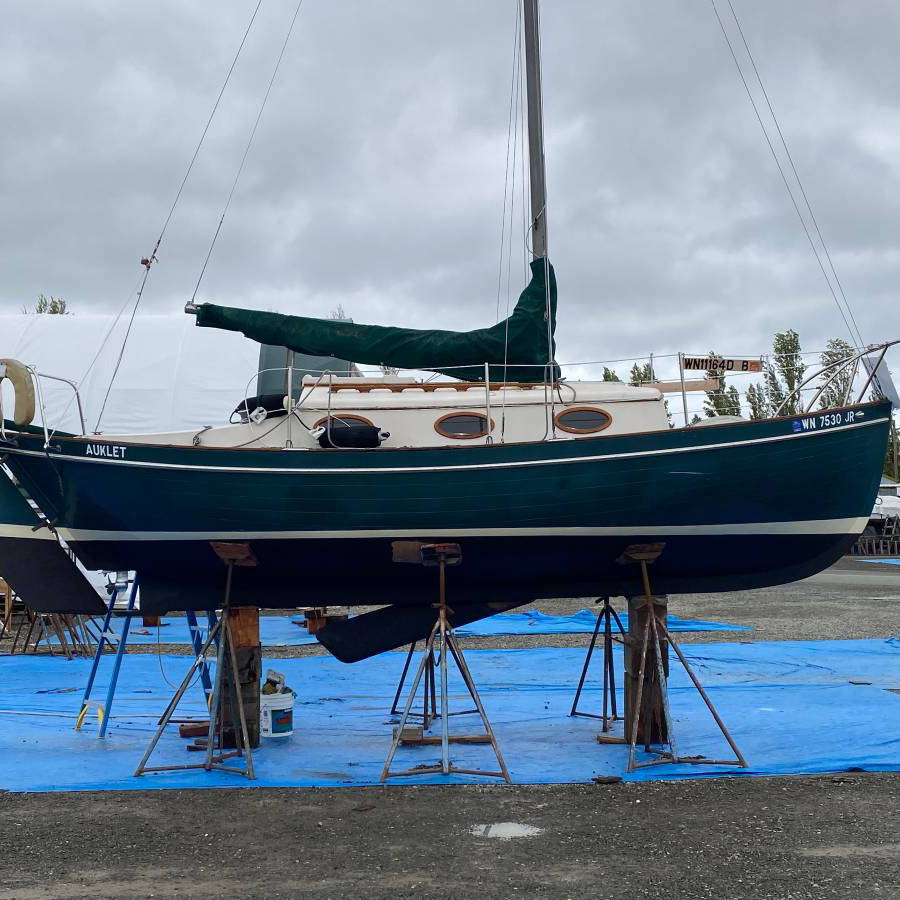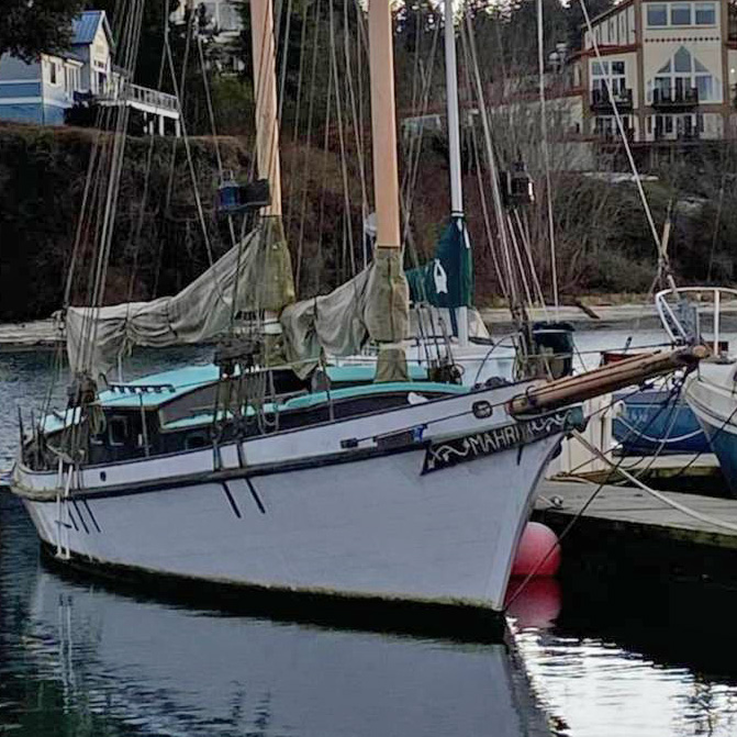 “Nutmeg” was built from a British kit in the late ‘80s by Lopez Island boatbuilder Geremy Snapp. She’s built of marine plywood and solid mahogany. I put a new deck on her in 2019. She also has a new (2020) set of sails from Trident in England and Harken roller furling.
