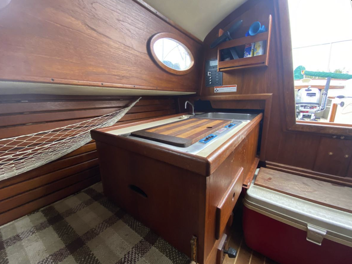 Perch yourself in the windward aft rail seat. Enjoy a well deserved refreshment and turn the tiller over to a friend who never gets a chance to steer. Tell them to fall off a point and relax. Set up the interior with a comfortable full size mattress in that massive space aft, ship a decent anchor and ground tackle and take this boat north to the San Juan Islands.