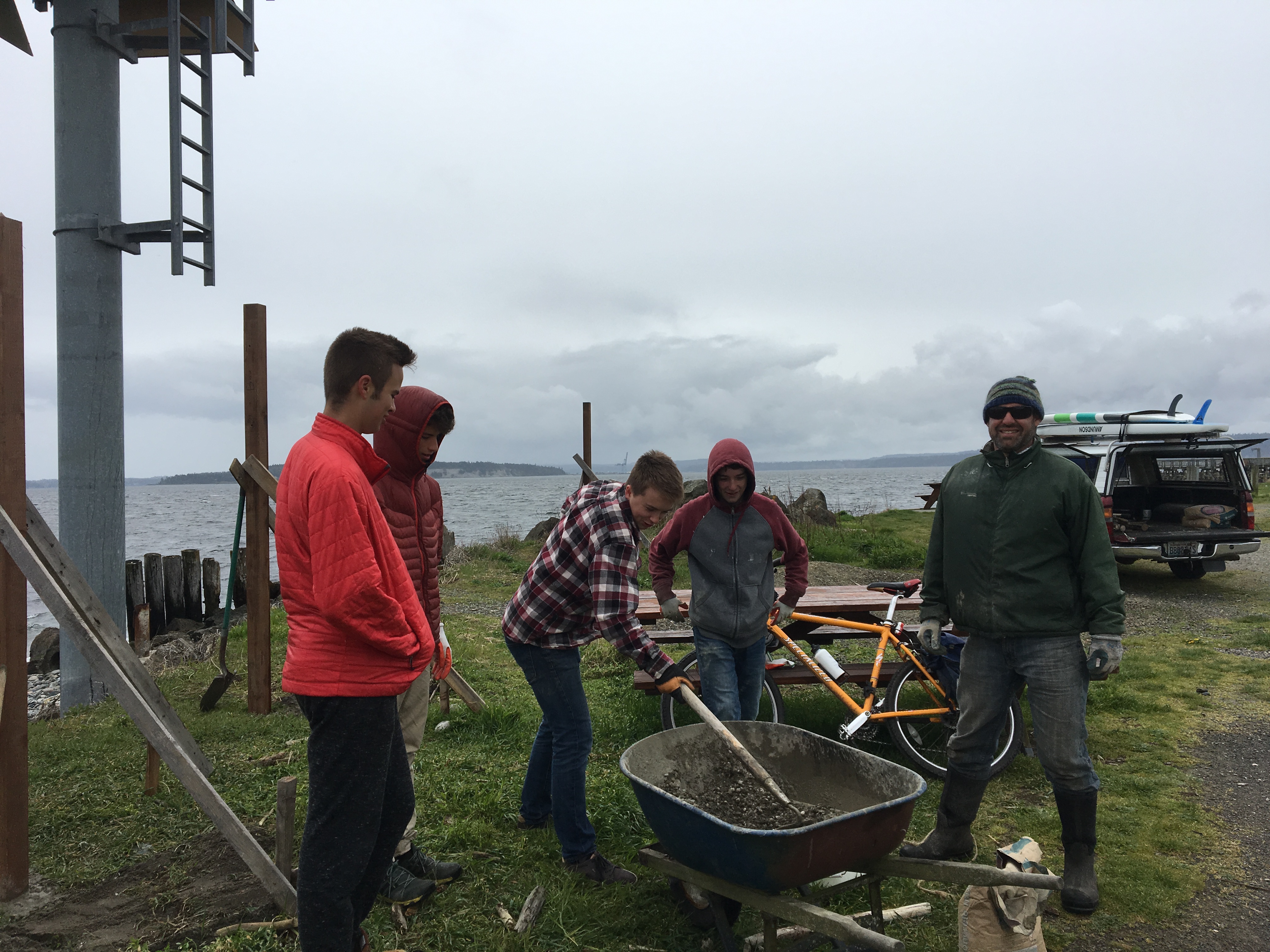 A second group of us drilled the posts and uprights, then headed over to Point Hudson the dig holes, mix concreted, and set the posts.
