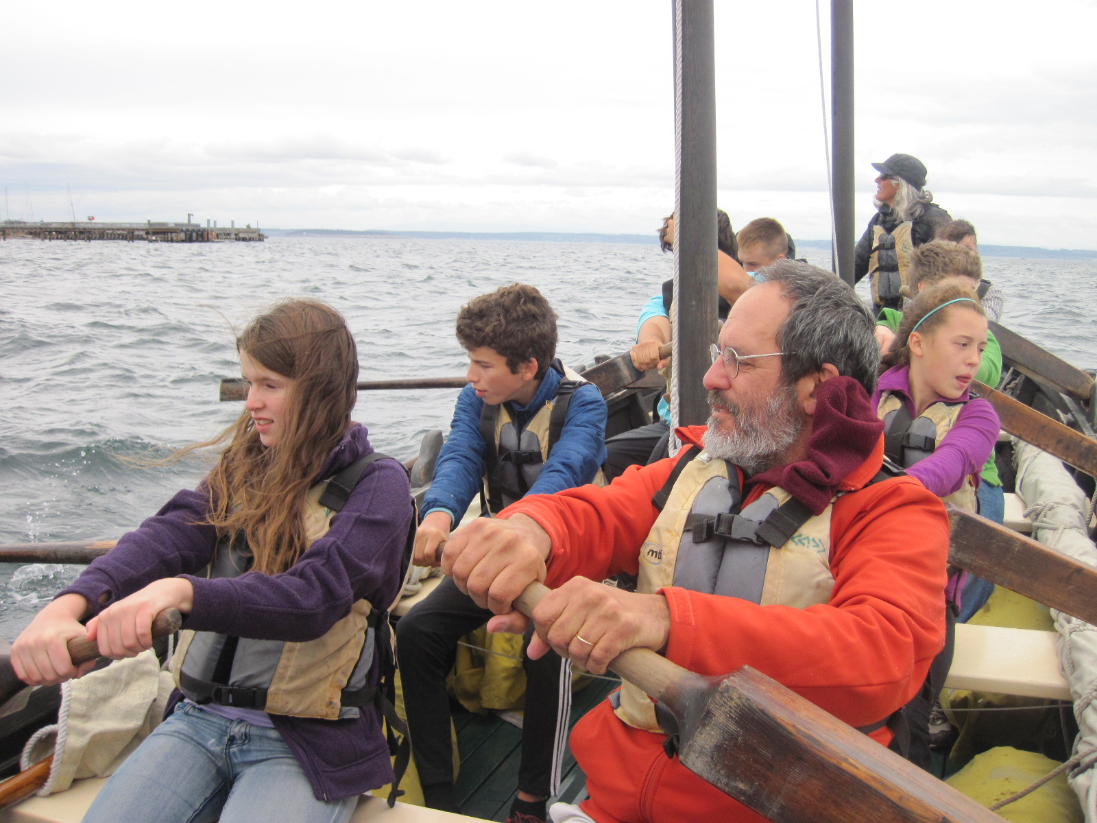 A winter wind was blowing from the south east, which made for some challenging rowing but this crew persevered. We learned and practiced rowing commands and made our way along the Port Townsend waterfront. Then we dropped anchor and enjoyed our snacks (thanks Food Co-op!) After some rest we pulled up the hook and made our way back into Point Hudson. The wind gave us some opportunities to practice our power strokes!
