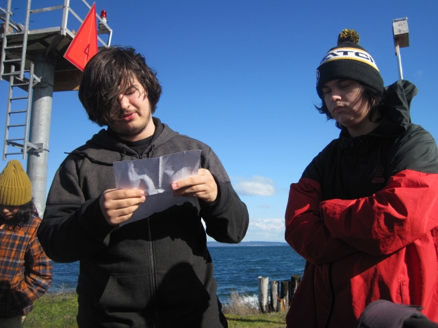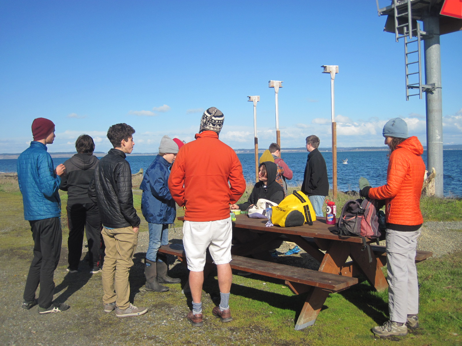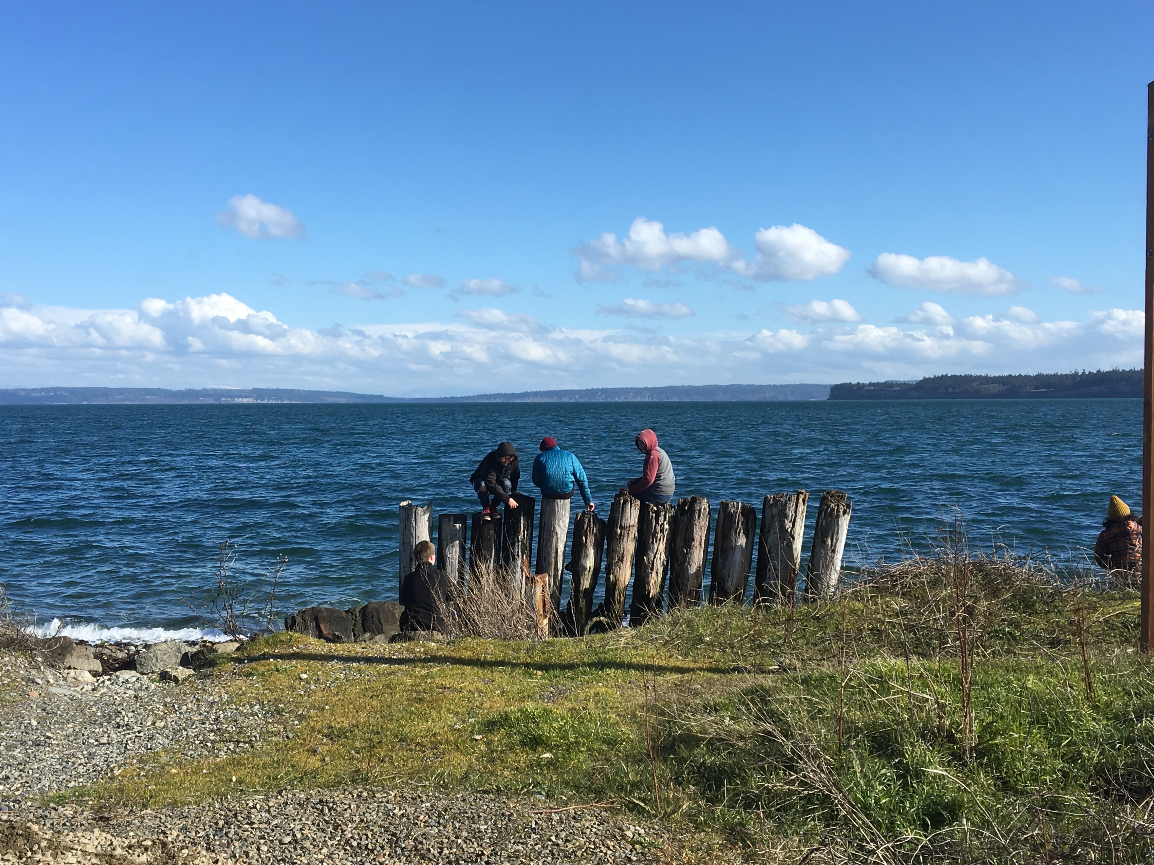 The weather was posted as a small craft advisory, which meant that we couldn’t go out it the long boats. Instead we took a walk to the point for our snack break, moment of silence, and Hunter’s Salish Sea report on the health of our local orcas.