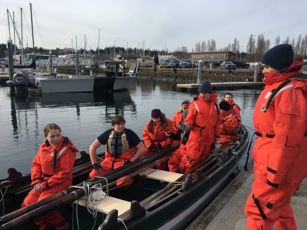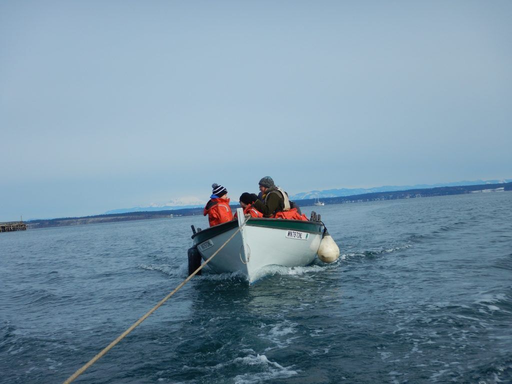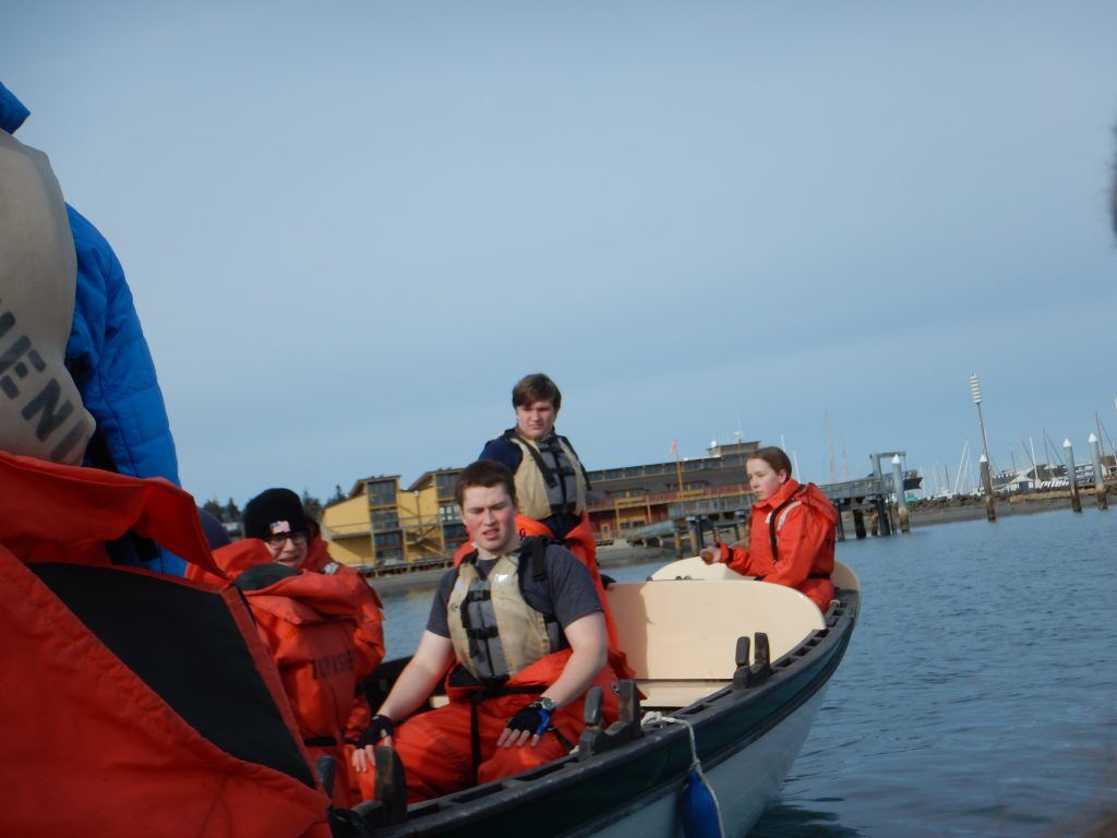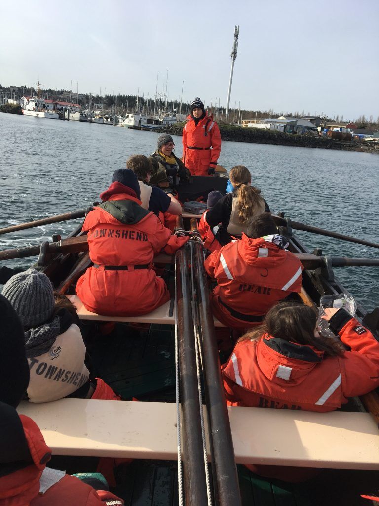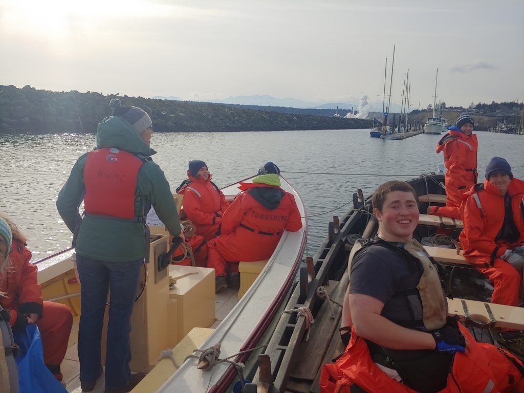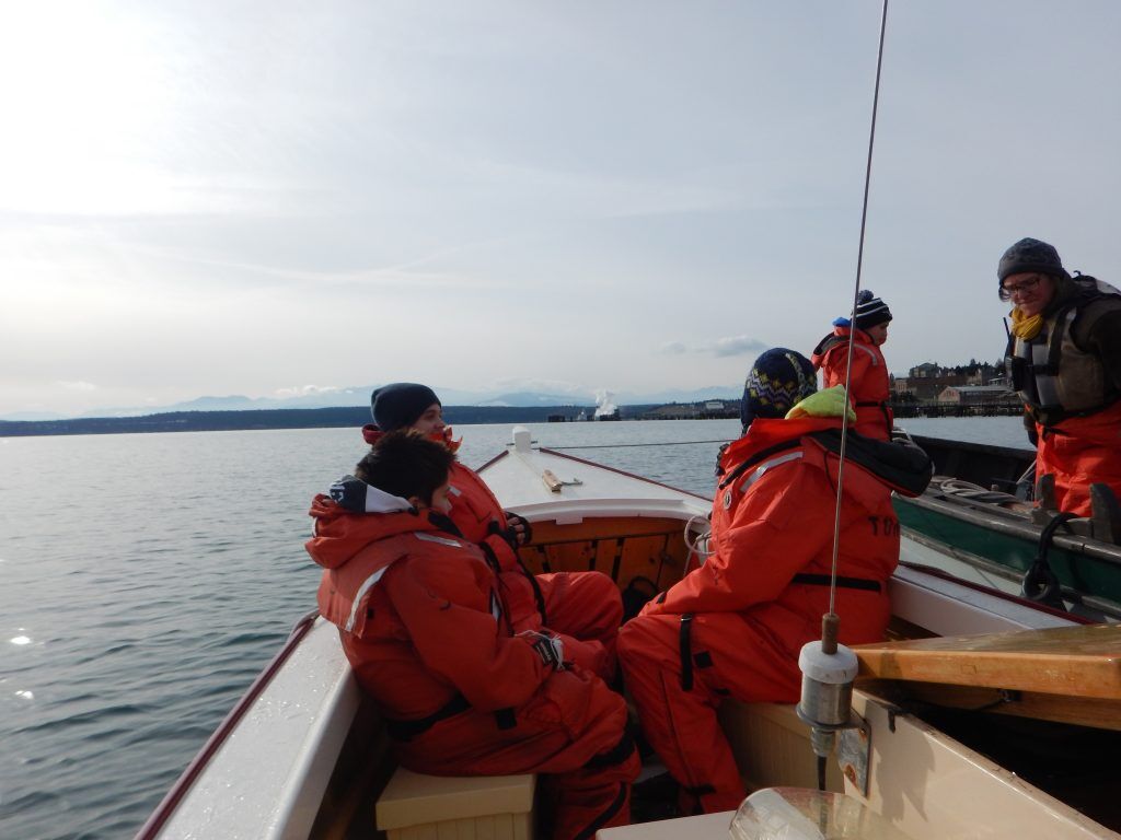 We rowed and sang and pumped and bailed until we were almost back to Point Hudson. We stopped for a short snack and moment of silence in the cold winter sunshine. At the end of the day we appreciated seeing all of our work on the boat, working together as a team, having fun, wearing warm orange suits, and being back in the boat. See you next week!