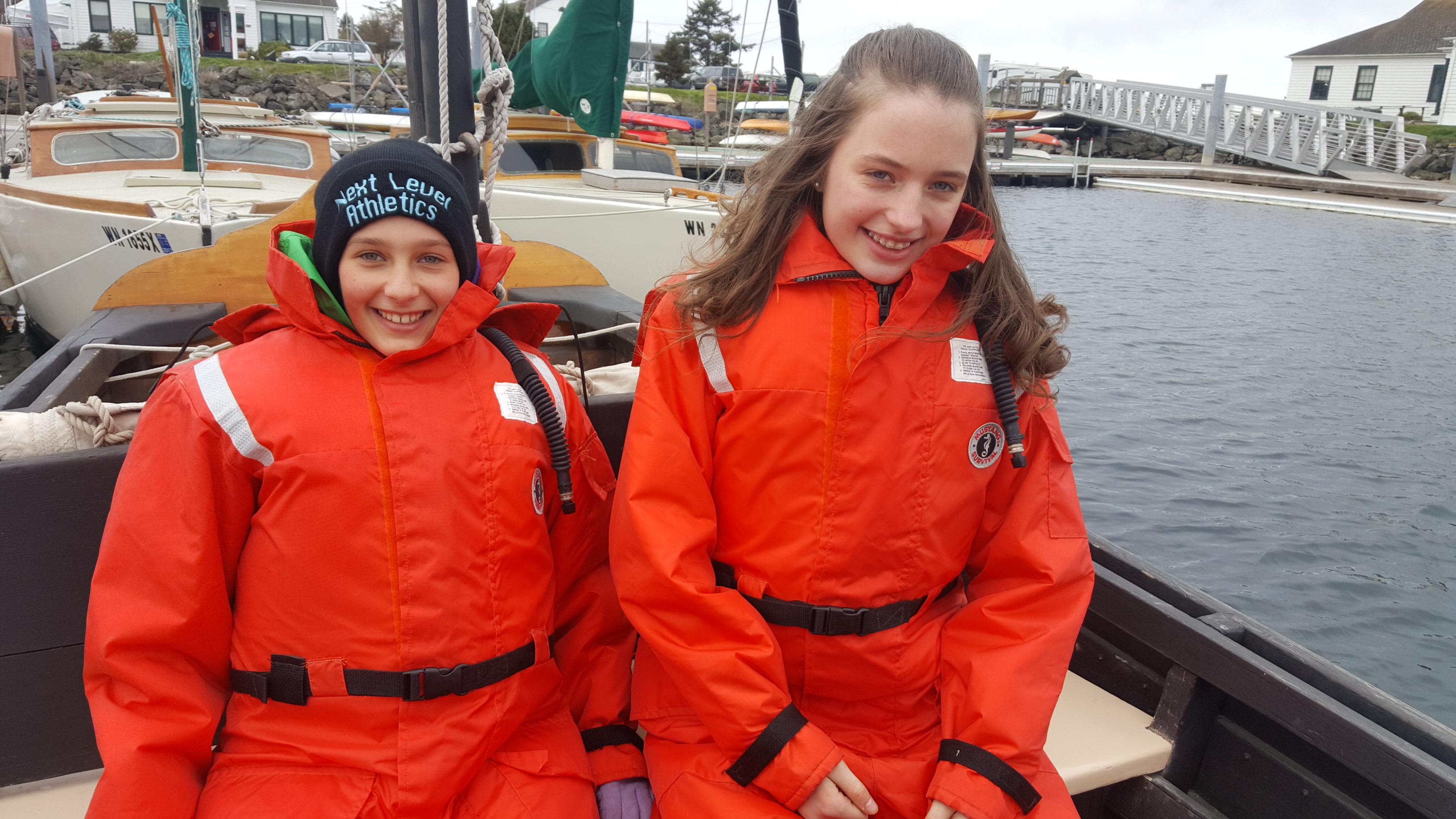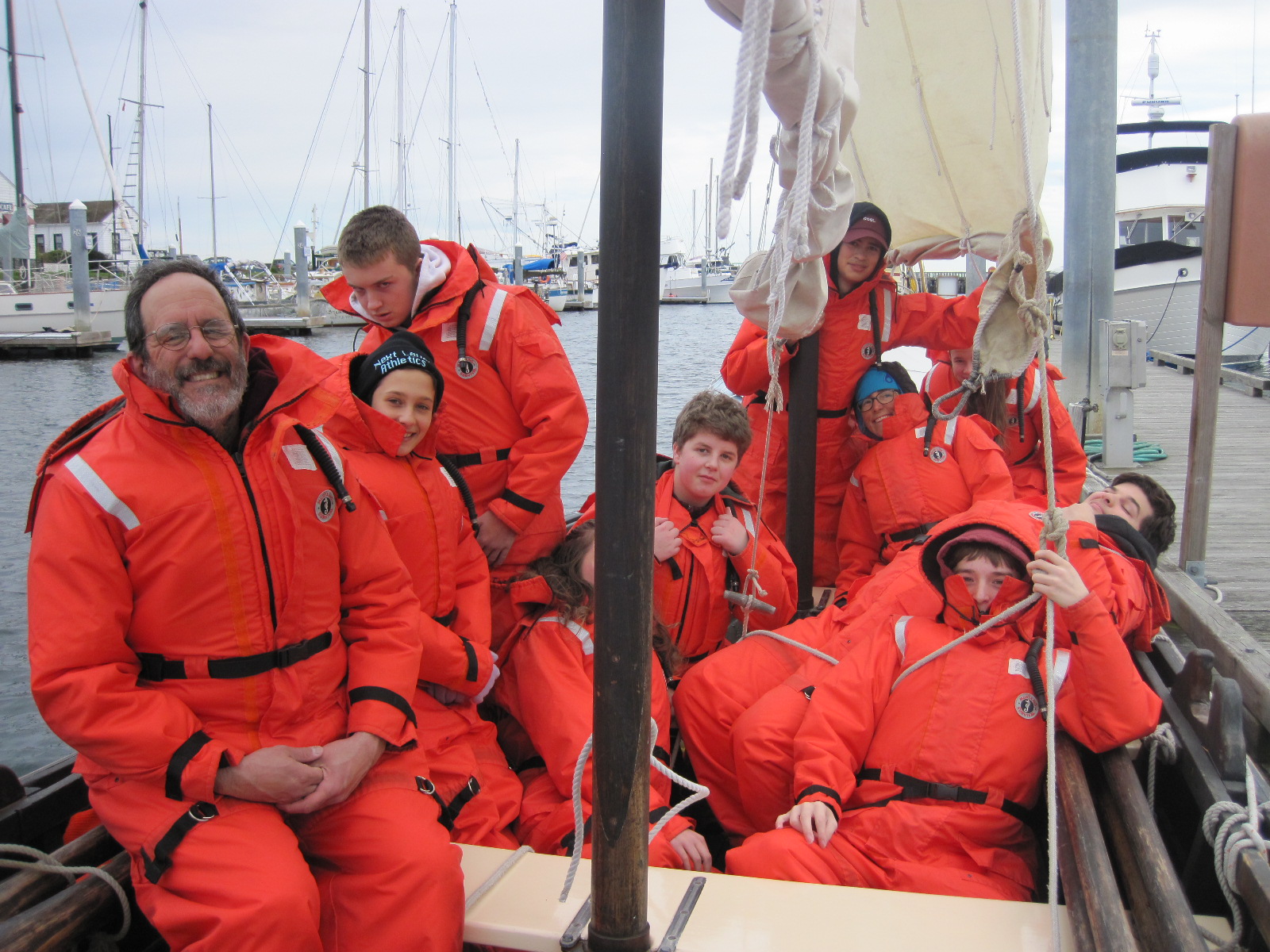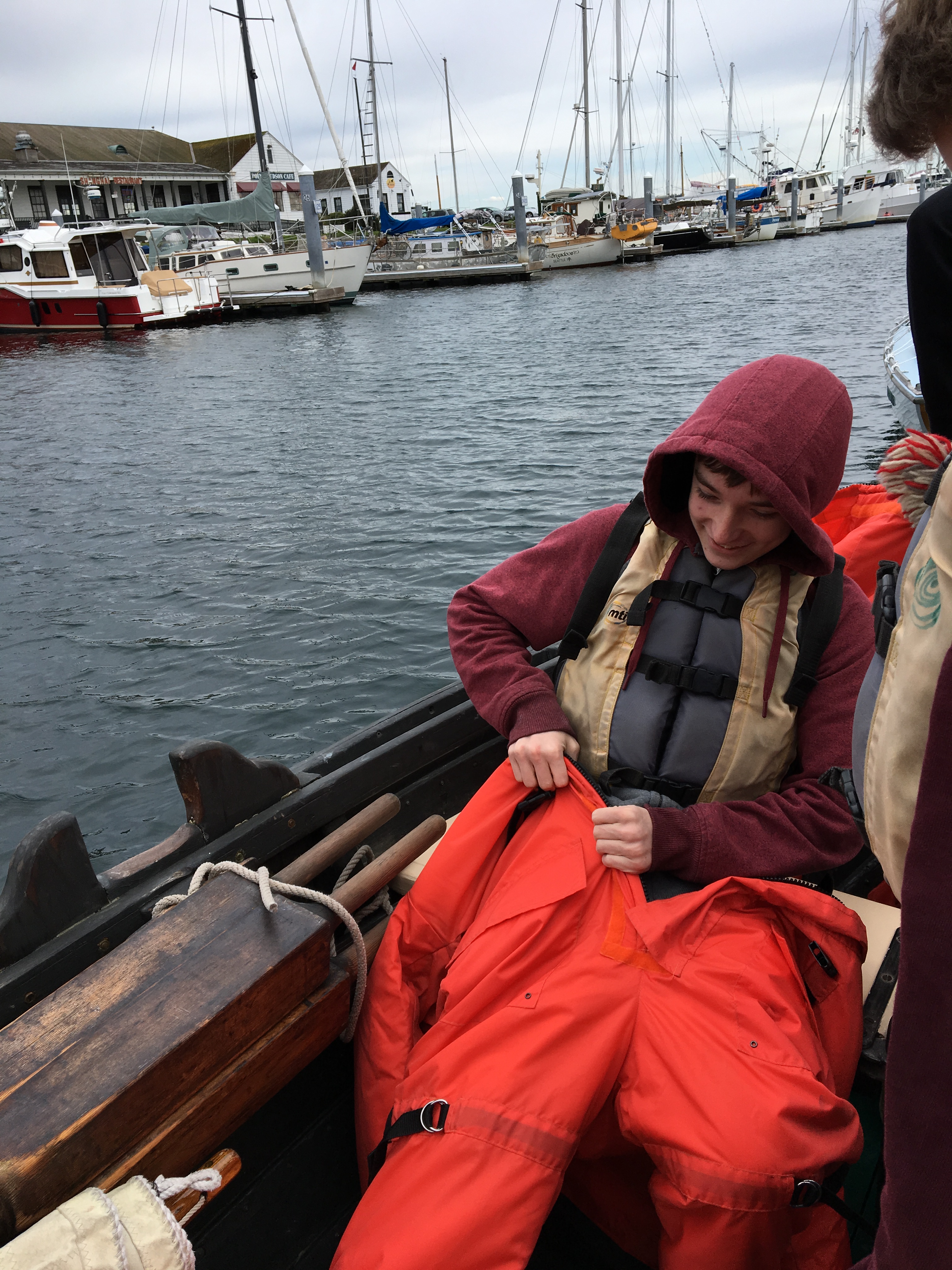 Before we knew it, class was almost over. We struck and furled the sails, then headed back to the bosun’s locker with our exposure suits in hand (or wearing them). As usual, we took time as a group to reflect on the day. We were challenged by being restricted and warm in our exposure suits, being tired and low energy, and not getting to go boating. We enjoyed being outside in the wind, successfully completing our squall drill, having time to work on our zine, and having fun with each other.