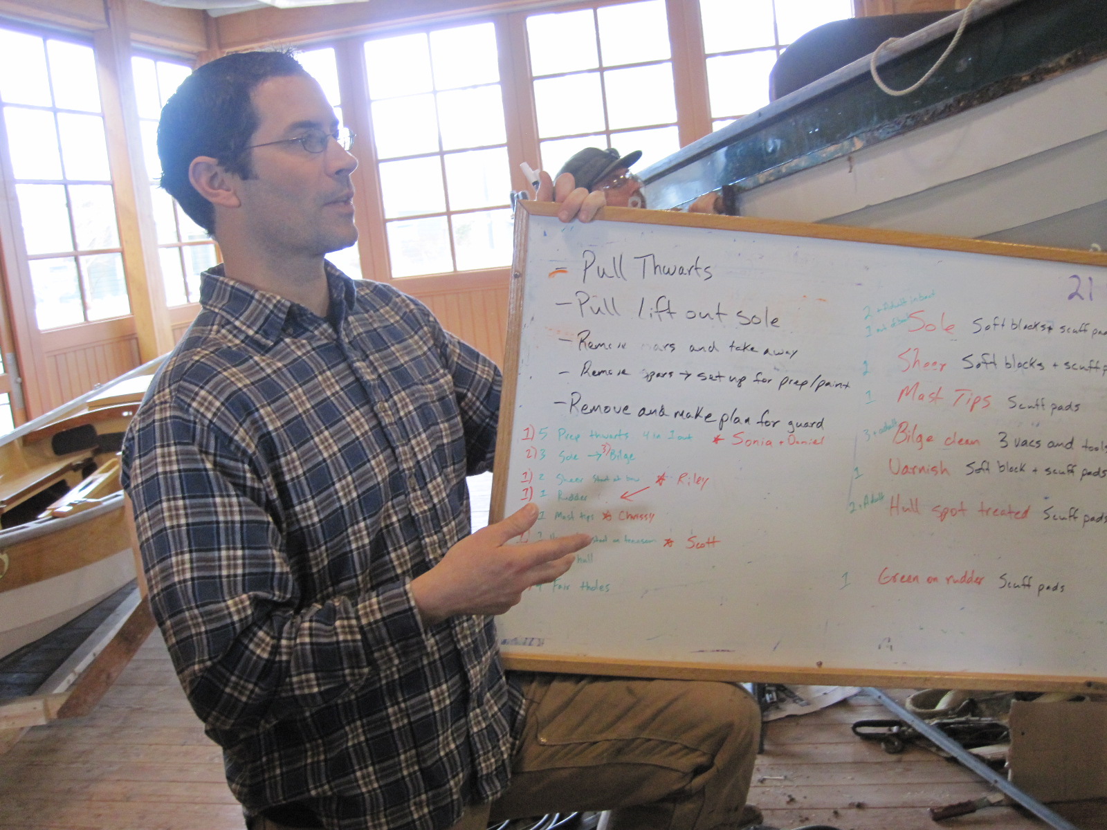 Then we headed downstairs to where Scott, the NWMC Boat Shop Manager, briefed us on the plan for the day. There was alot on his list!