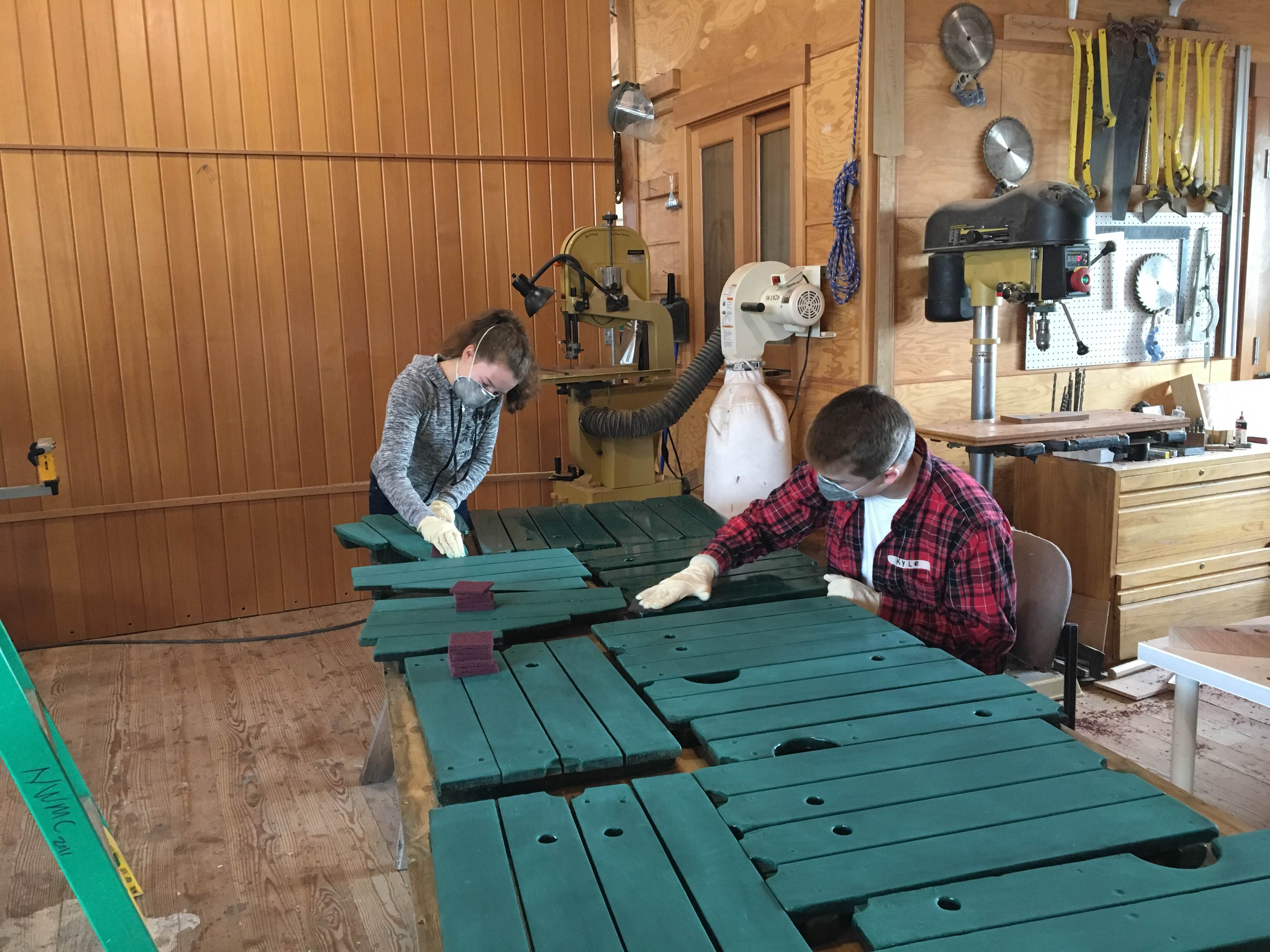 We jumped into our work with continued focus, pride, and a goal to work hard. Discussing the idea of critiquing (instead of criticizing) ourselves and others helped set the stage for improving our painting and varnishing skills. Scott gave us some direction on finding that “perfect tooth” that gives the finish something to cling to, while leaving as much on as possible. He also helped us improve our rolling and tipping skills.