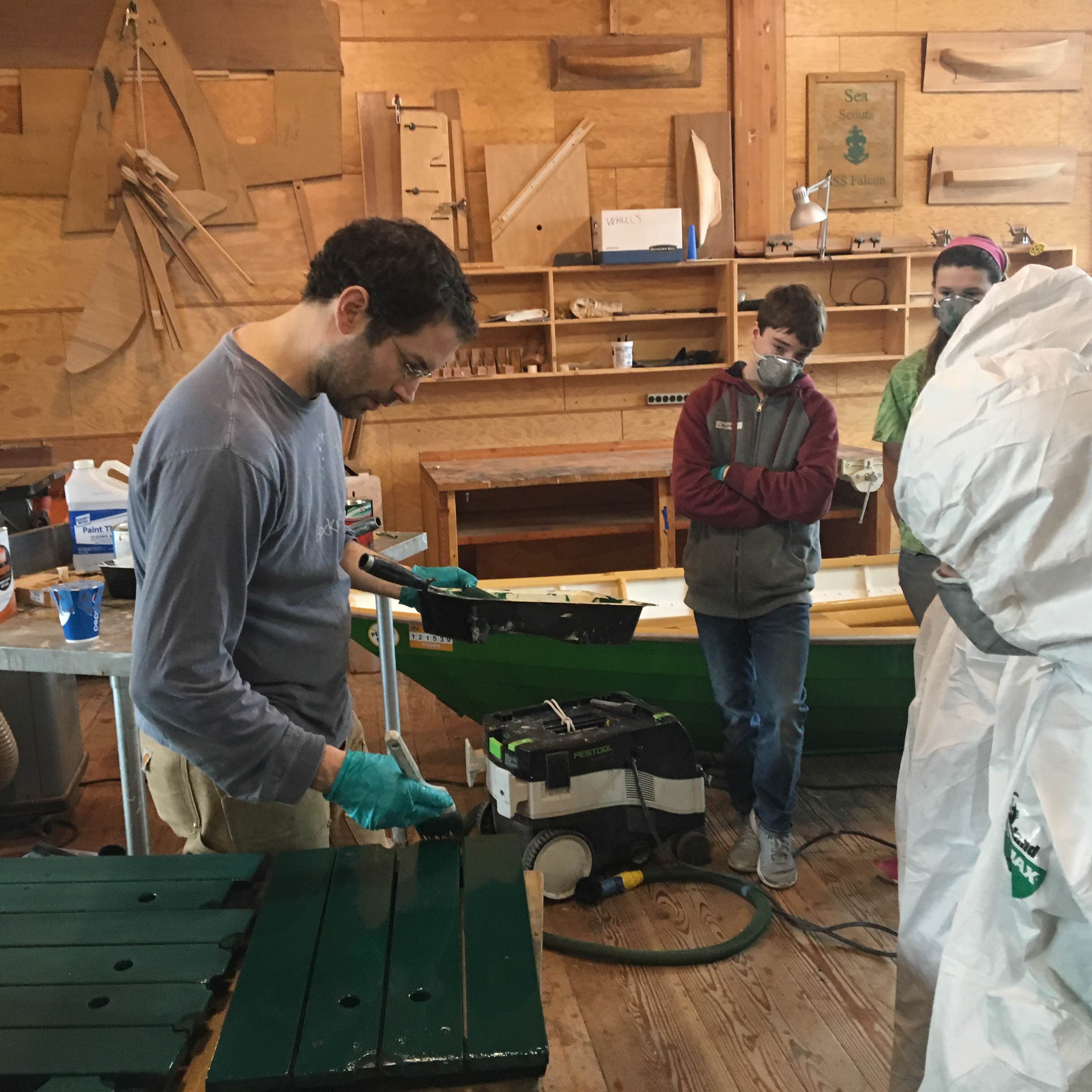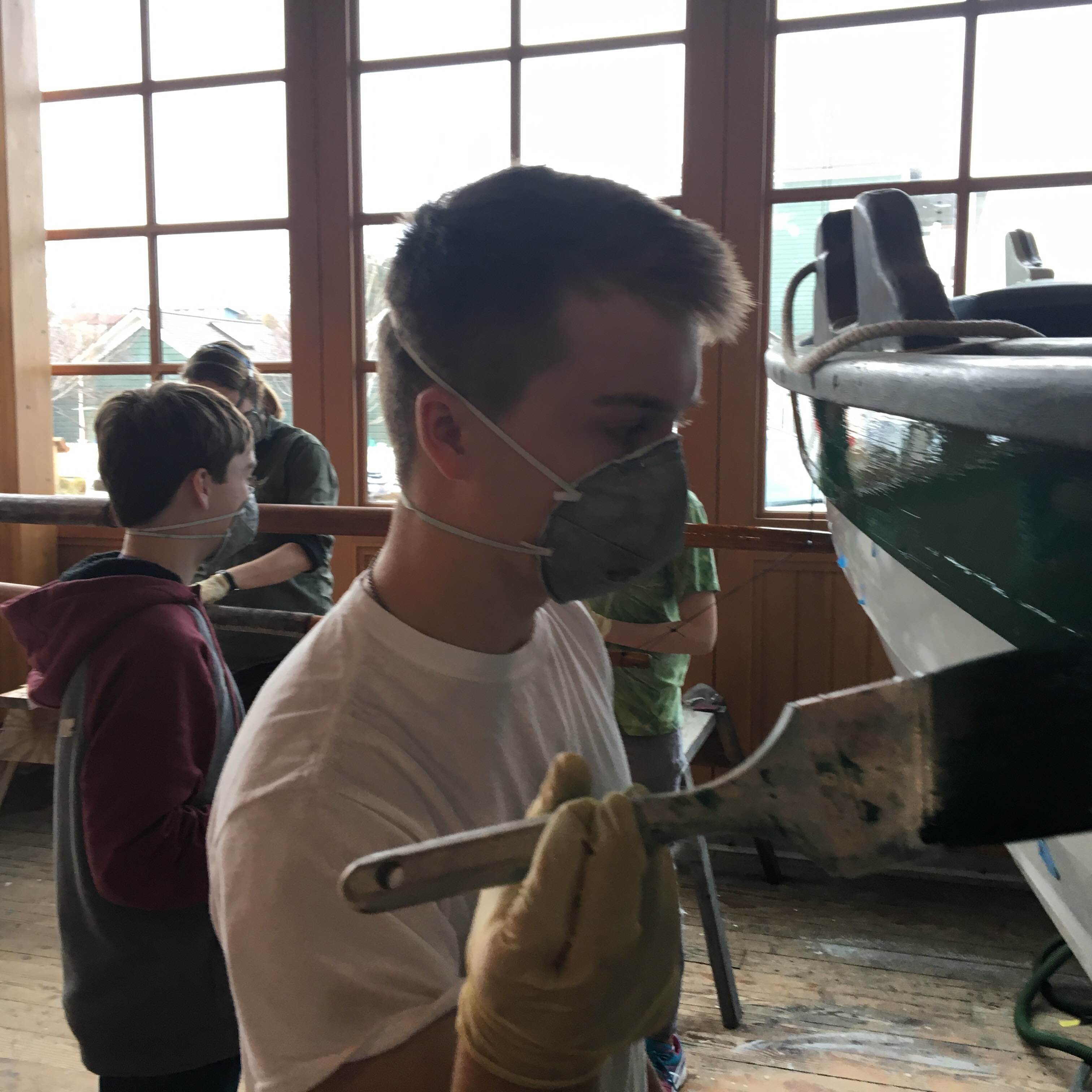 At the end of the day we reflected on new skills we tried (painting, prepping with scotch brite pads, running a shop vac, working the tipping angle) and things we’d like to try or improve at (most of us want to try more varnishing and painting and get better at not having drips or sags). Overall, a highly successful day for Bravo Team and longboat Townshend.