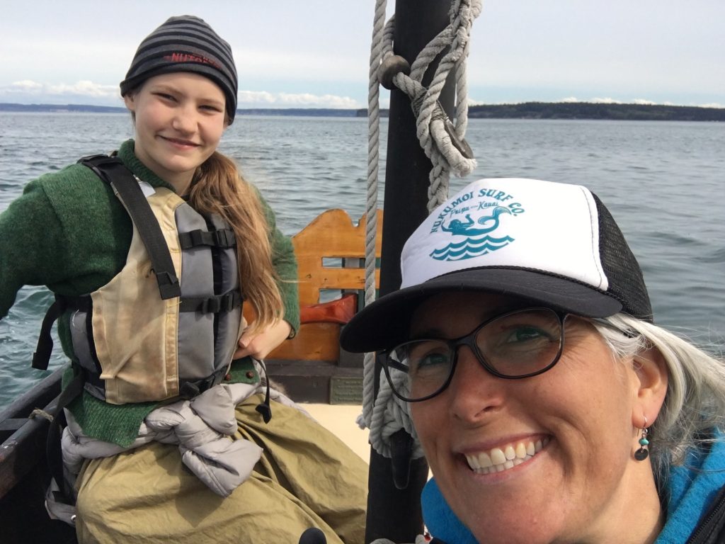 How would we accomplish the task of both videography and capturing the longboat underway? Borrowing a tripod, Luca stationed himself on the NWMC dock (put back in just a week and a half ago!) ready to record. We made our way out of the marina aboard longboat Townshend and through VHF communication, created a plan for ‘the perfect shot.’ After two rounds of rowing and singing (the first hadn’t been recorded so was an accidental dress rehearsal), we anchored near the County Dock and settled in for snack, moment of silence, and general enjoyment of the beautiful day today.
