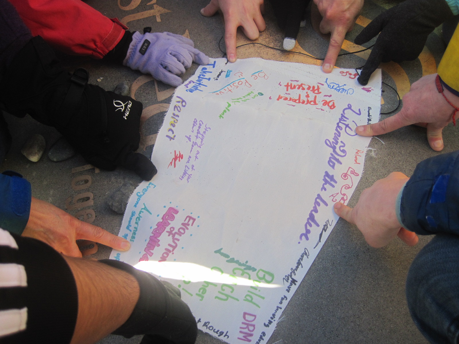 After that our newest team members, Anna and Jasmine, signed on to our ship’s articles, which is out team agreement for how we work together. Everyone put a finger on the ship’s articles flag and recommitted to them.