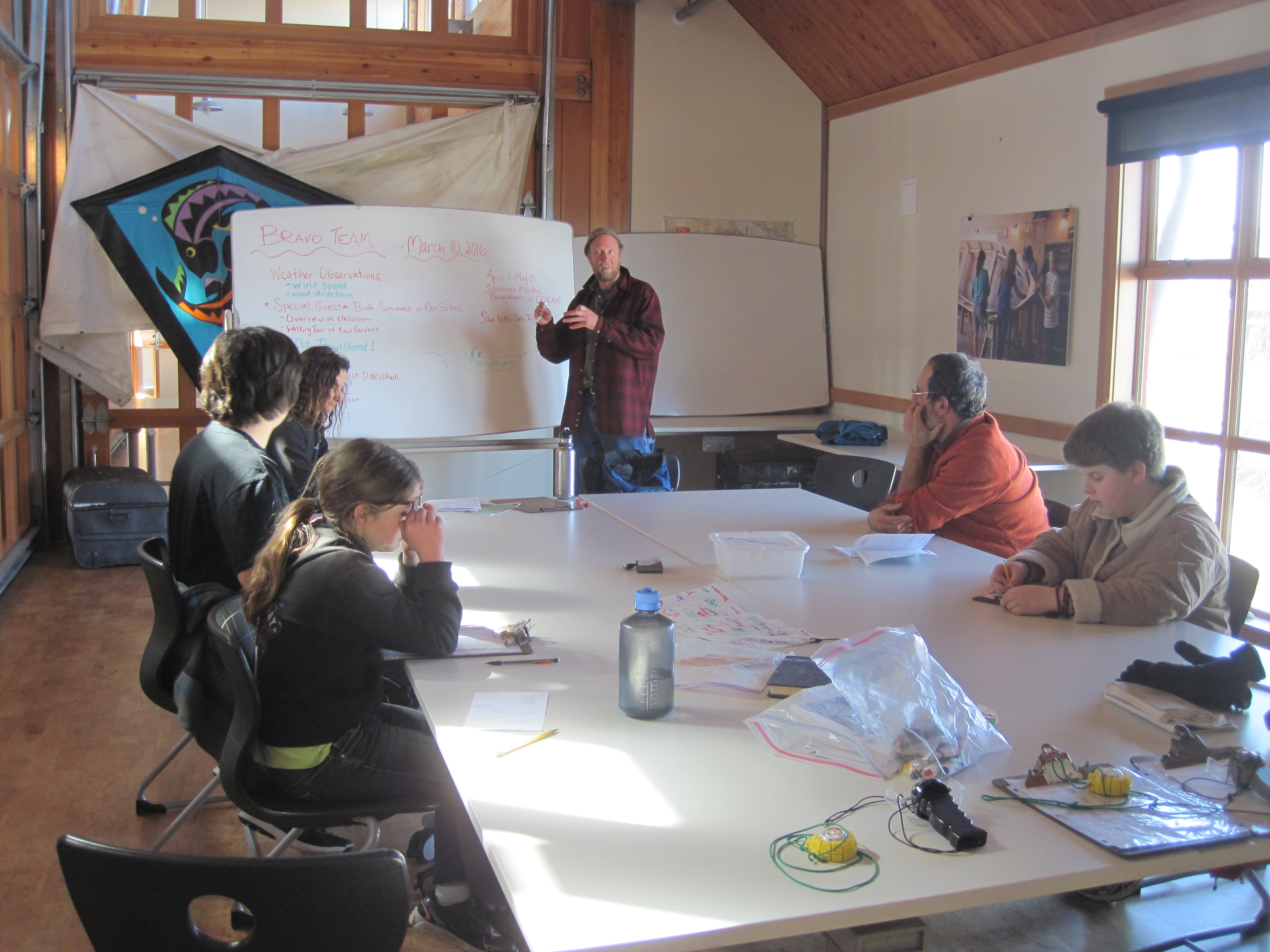 We also pumped out longboat Townshend, toured Schooner Martha, sang a song called “The Big 4” (see photo), and shared a snack before having an impromptu beach cleanup along the Compass Rose area from the high tide and big waves. Way to go Bravo Team for persevering on a ‘weather day.’