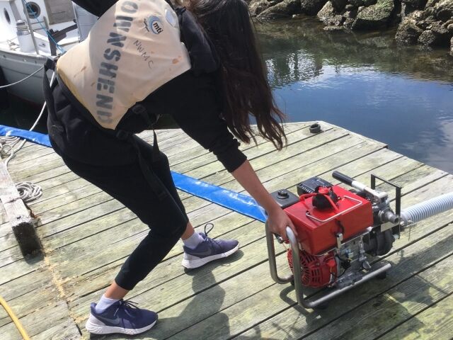 Each day students rode bicycles down to NWMC and rotated through 3 activities. The USCG Damage Control Simulator challenged students to find ways to manage flooding scenarios and learn how to use a de-watering pump. Science activities included water quality tests and collecting/viewing plankton. Knot tying and heaving lines were the focus of a mariner’s skills activity on the beach. It was truly rewarding to hear the laughter and chatter of 7th graders on campus again!